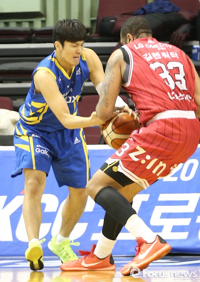 (서울=포커스뉴스) 20일 서울 잠실실내체육관에서 열린 2015-2016 프로농구 삼성-LG 경기에서 LG 길렌워터와 삼성 박재현이 볼을 동시에 잡고 있다.