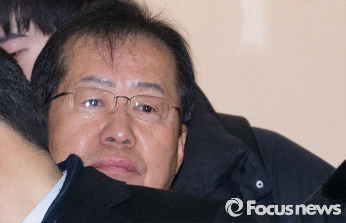 (서울=포커스뉴스) 고 성완종 전 경남기업 회장에게서 불법정치자금 1억원을 받은 혐의로 기소된 홍준표 경남지사가 21일 오전 서울 서초구 서울중앙지방법원에서 첫 공판에 출석하기 위해 승강기에 탑승하고 있다.