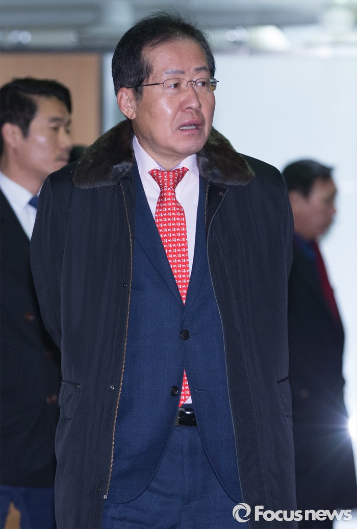 (서울=포커스뉴스) 고 성완종 전 경남기업 회장에게서 불법정치자금 1억원을 받은 혐의로 기소된 홍준표 경남지사가 21일 오전 첫 공판에 출석하기 위해 서울중앙지방법원으로 들어서고 있다.