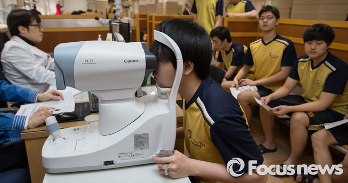 (서울=포커스뉴스) 2016년 첫 징병검사가 실시된 21일 오전 서울 영등포구 서울지방병무청에서 징병대상자들이 시력 검사를 하고 있다.