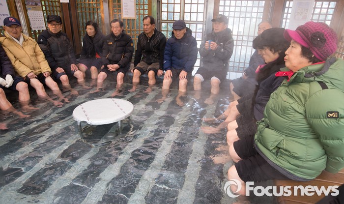 (대전=포커스뉴스) 절기상 대한인 21일 오전 대전 유성구 족욕체험장에서 영하의 강추위에도 불구하고 시민들이 온천수에 발을 담그고 몸을 녹이고 있다.