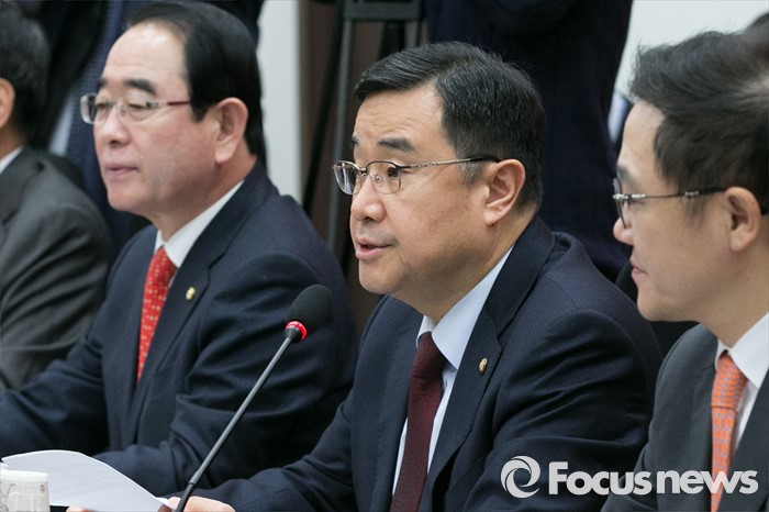 (서울=포커스뉴스) 김정훈(가운데) 새누리당 정책위의장이 21일 오전 서울 여의도 국회에서 열린 서비스산업발전기본법 조속 제정을 위한 경제계 간담회에 참석해 모두발언하고 있다.