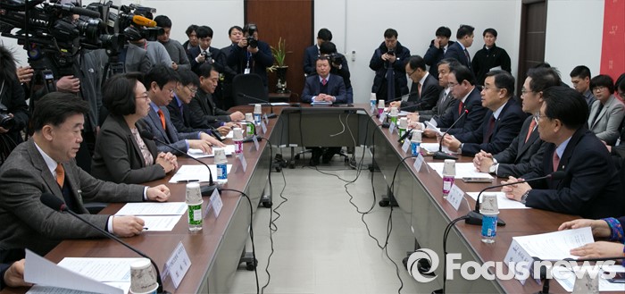 (서울=포커스뉴스) 21일 오전 서울 여의도 국회 새누리당 정책위 회의실에서 서비스산업발전기본법 조속 제정을 위한 경제계 간담회가 열리고 있다.