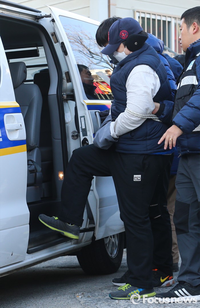 (인천=포커스뉴스) 부천 초등생 살해사건의 네번째 현장검증이 실시된 21일 오후 피의자가 시체 일부를 유기한 지인 집으로 알려진 인천 계양구 한 주택에서 피의자 최모 (33)씨가 범행 상황을 재연 후 호송차에 올라 타고 있다.