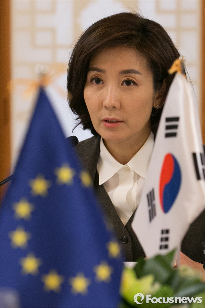 (서울=포커스뉴스) 나경원 외교통일위원회 위원장이 21일 오후 서울 여의도 국회 사랑재에서 북한의 제4차 핵실험 후속 대책 논의를 위한 주한유럽연합(EU) 회원국 대사 초청 오찬간담회에 참석해 모두발언하고 있다.