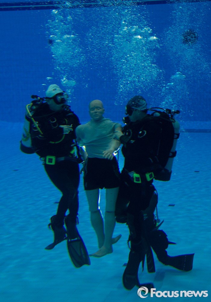 (대전=포커스뉴스) 21일 오후 대전 동구 용운국제수영장에서 충북 영동소방서 구조대원들이 동계 수난사고 인명구조훈련을 실시하고 있다.
