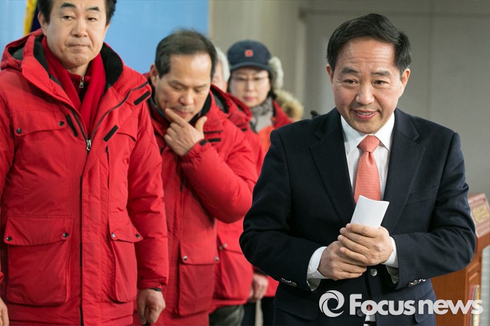 (서울=포커스뉴스) 새누리당 마포갑 지역위원회 위원장인 강승규 예비후보가 21일 오후 서울 여의도 국회 정론관에서 안대희 전 대법관의 당 최고위원 지명과 관련해, 입장을 표명 뒤 퇴장하고 있다.