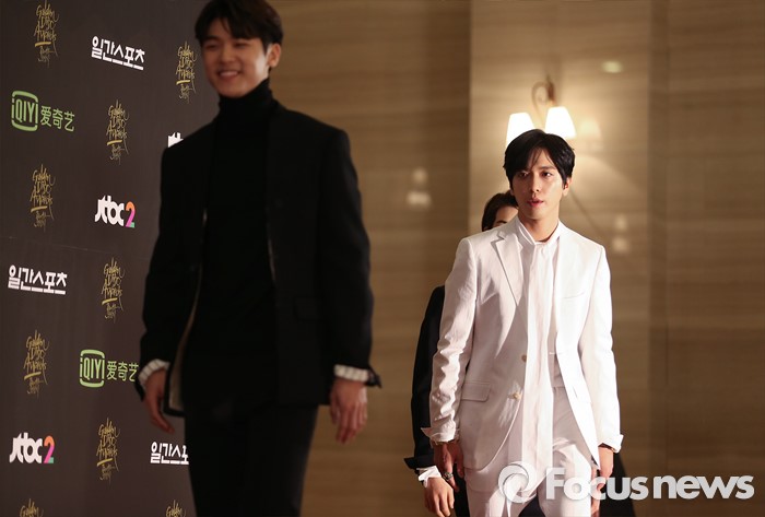 (서울=포커스뉴스) 21일 서울 동대문구 경희대학교 평화의 전당에서 열린 제 30회 골든디스크 시상식에 참석한 씨엔블루의 멤버들이 포토타임을 위해 이동하고 있다.