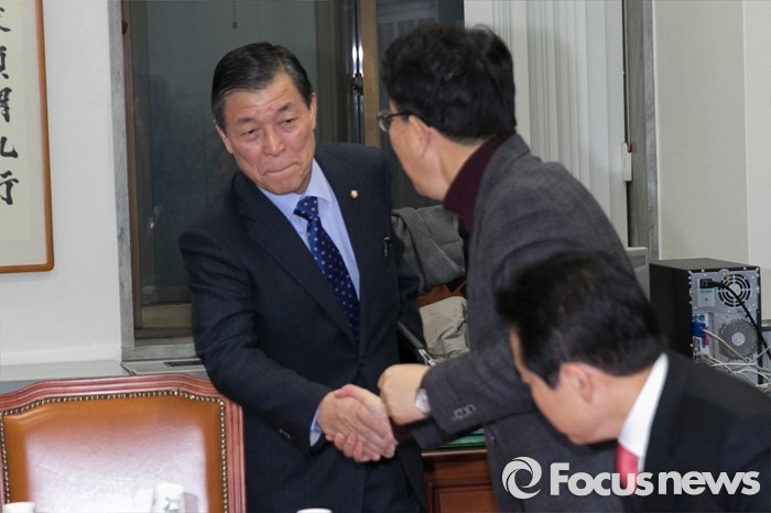 (서울=포커스뉴스) 새누리당 총선기획단장인 황진하(왼쪽) 사무총장과 간사인 권성동 전략기획본부장이 22일 오전 서울 여의도 국회에서 열린 총선기획단 2차 회의에 참석해 악수하고 있다.
