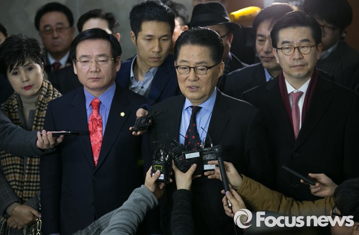 (서울=포커스뉴스) 박지원 더불어민주당 의원이 22일 오전 서울 여의도 국회 정론관에서 탈당 기자회견을 마친 뒤 취재진 질문에 답하고 있다.