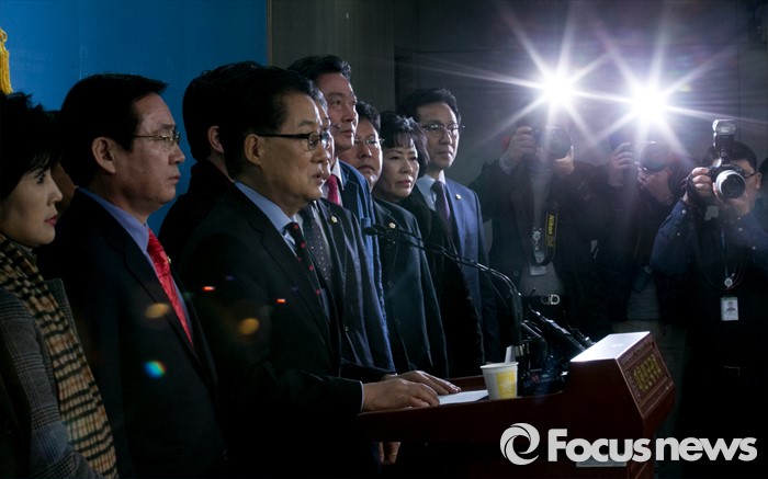 (서울=포커스뉴스) 박지원 더불어민주당 의원이 22일 오전 서울 여의도 국회 정론관에서 탈당 기자회견을 하고 있다.