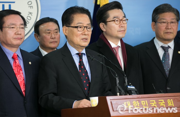 (서울=포커스뉴스) 박지원 더불어민주당 의원이 22일 오전 서울 여의도 국회 정론관에서 탈당 기자회견을 하고 있다.