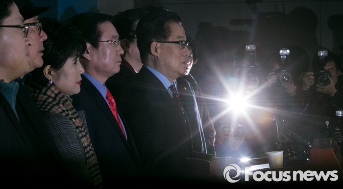 (서울=포커스뉴스) 박지원 더불어민주당 의원이 22일 오전 서울 여의도 국회 정론관에서 탈당 기자회견을 하고 있다.