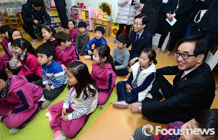 (서울=포커스뉴스) 이준식 사회부총리 겸 교육부장관이 22일 오전 서울 용산구 일민유치원을 찾아 학부모, 보육 관계자 등과 간담회를 열기 전 수업을 참관하고 있다.