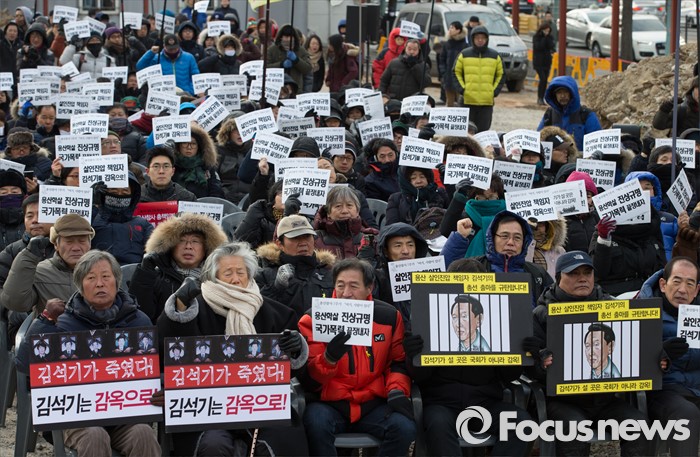 (서울=포커스뉴스) 23일 오후 서울 용산참사가 일어났던 용산4구역 재개발 지역에서 열린 '용산참사 7주기 추모대회'에 유족들을 비롯한 당시에 같이 망루에서 활동했던 생존자들이 참석하고 있다.