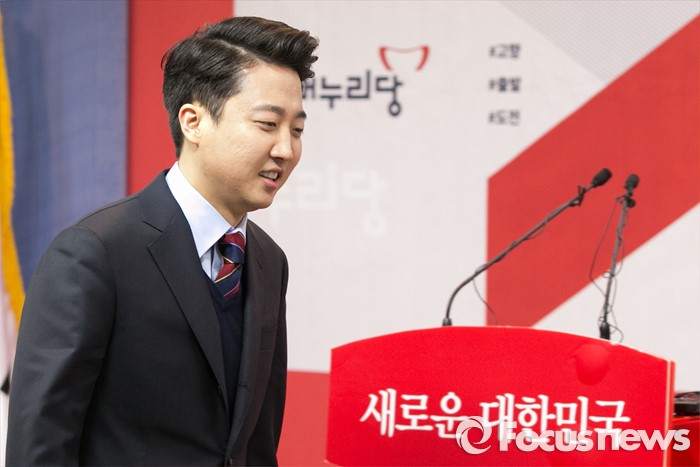 | △ 출마 기자회견장 들어 선 이준석 |