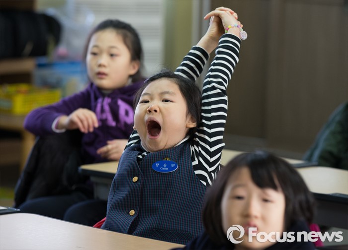 (청주=포커스뉴스) 한파가 이어진 가운데 25일 오전 충북 청주 대성초등학교가 개학식을 갖고 학사일정에 들어갔다. 1학년 학생이 수업중 하품을 하고 있다.