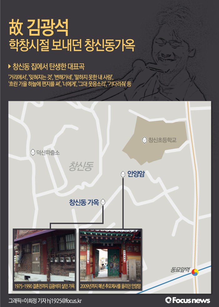 (서울=포커스뉴스) 가수 고(故) 김광석(1964-1996)이 학창시절을 보낸 서울 종로구 창신동 가옥이 매각된 것으로 뒤늦게 확인됐다. 최근 서울시가 창신동 일대에 예술문화 거리를 조성하겠다고 밝힌 가운데 나온 이야기로 안타까움을 더해주고 있다.