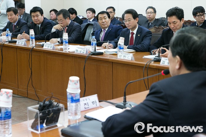 (서울=포커스뉴스) 황진하(앞 뒷모습) 새누리당 사무총장이 25일 오후 서울 여의도 새누리당사에서 열린 전국 시도당위원장회의에 참석해 모두발언하고 있다.