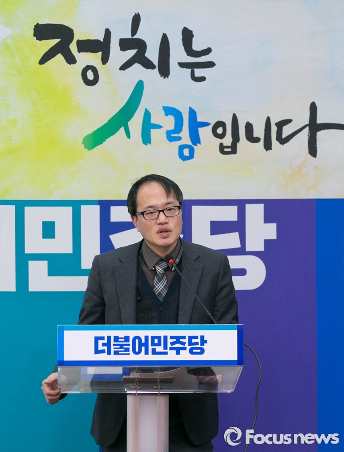 (서울=포커스뉴스) 세월호 유가족 법률 대리인 등으로 활약한 박주민 전 민변 사무처장이 25일 오후 서울 여의도 국회에서 열린 더불어민주당 인재영입 기자회견에 참석해 인사말을 하고 있다.