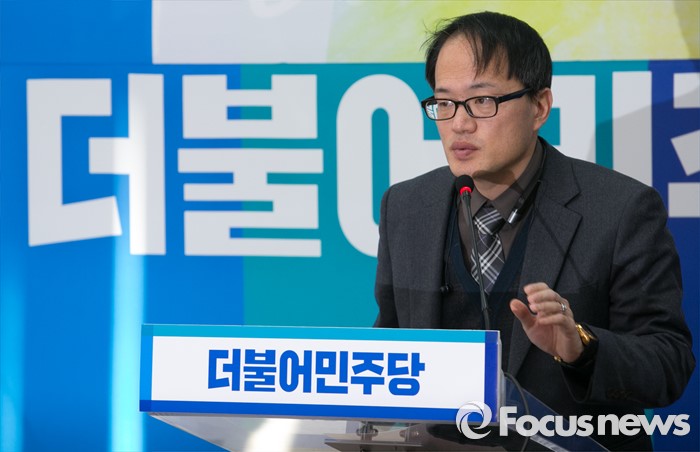 (서울=포커스뉴스) 세월호 유가족 법률 대리인 등으로 활약한 박주민 전 민변 사무처장이 25일 오후 서울 여의도 국회에서 열린 더불어민주당 인재영입 기자회견에 참석해 인사말을 하고 있다.
