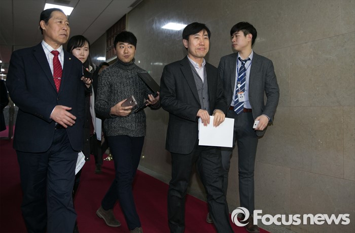 (서울=포커스뉴스) 새누리당 초·재선 의원 모임 '아침소리' 소속 하태경(오른쪽), 이노근 의원이 정의화 국회의장과의 면담을 위해 25일 오후 서울 여의도 국회 의장집무실로 향하고 있다.