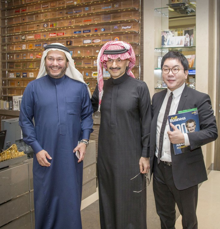 사우디의 알 왈리드 왕자는 중동 최대의 부호로써 미국 시티그룹의 최대주주이자, 애플 트위터 디즈니 등의 개인 최대주주로 등재돼 있다.(왼쪽부터) 킹덤홀딩컴퍼니 CEO 탈랄(Talal), 알 왈리드 왕자, 썬코어 최규선 회장 <사진=썬코어 제공>
