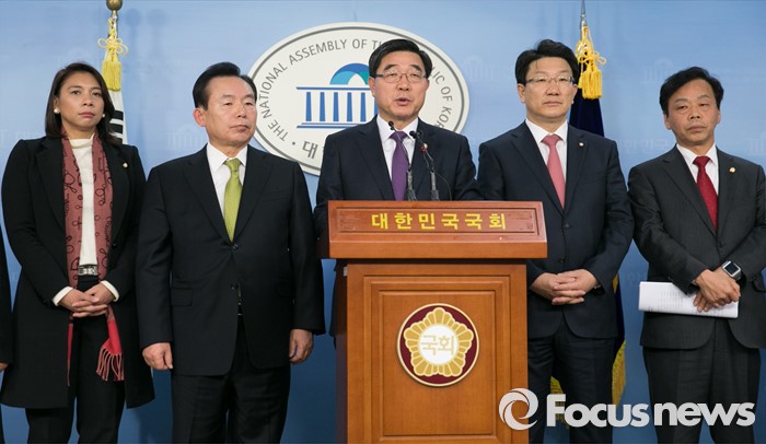 (서울=포커스뉴스) 이기권 고용노동부 장관과 이인제 새누리당 노동선진화특위원장 등 의원들이 25일 오후 서울 여의도 국회 정론관에서 노동개혁 2대 지침(일반해고 지침, 취업규칙 지침) 설명회를 마친 뒤 브리핑을 하고 있다.