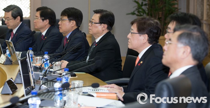 (세종=포커스뉴스) 26일 오전 세종시 정부세종청사 국무회의장에서 열린 서울-세종 영상 국무회의에서 세종청사에 참석한 국무위원들이 황교안 총리의 모두발언을 경청하고 있다.