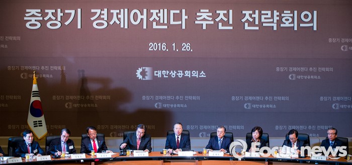 (서울=포커스뉴스) 박용만 대한상공회의소 회장을 비롯한 여야정 대표들이 26일 오전 서울 중구 대한상공회의소 국제회의장에서 열린 '중장기 경제어젠다 추진 전략회의'에 자리해 회의 준비를 하고 있다.