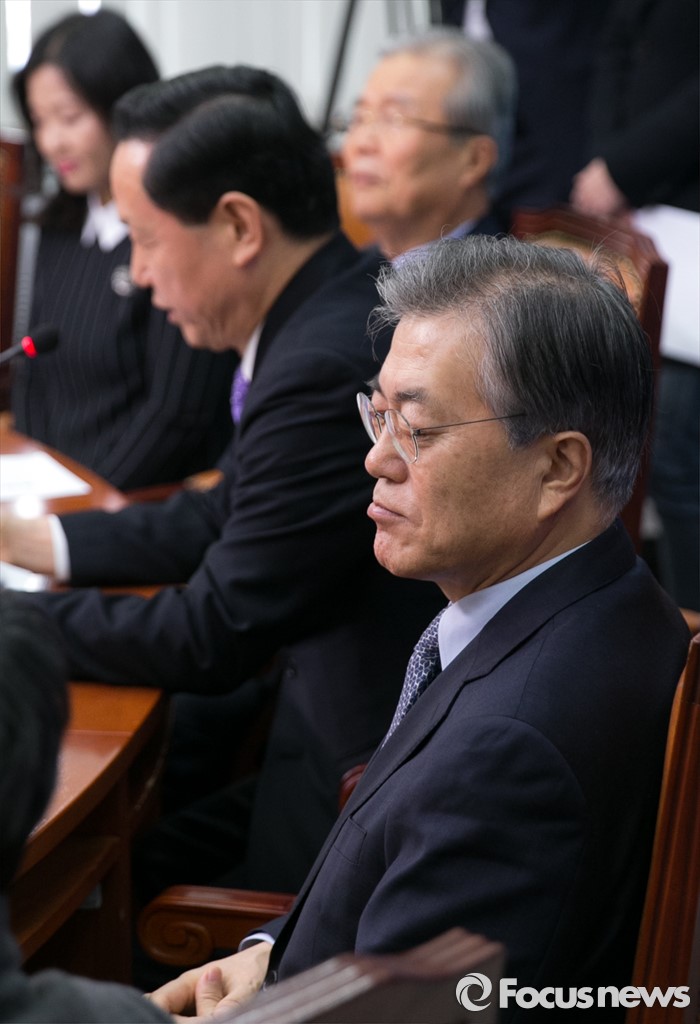 (서울=포커스뉴스) 26일 오전 서울 여의도 국회에서 열린 더불어민주당 인재영입위원회 1차 회의에 참석한 문재인 대표가 참석자들의 인사말을 듣고 있다.