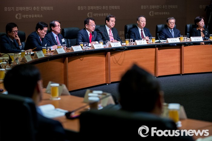 (서울=포커스뉴스) 유일호 경제부총리 겸 기획재정부 장관이 26일 오전 서울 중구 대한상공회의소 국제회의장에서 열린 '중장기 경제어젠다 추진 전략회의'에 자리해 축사하고 있다. 이날 회의에 자리한 여야정 대표 및 산학연 대표 70여명은 규제 근본 틀 개선, 기업문화 개선, 국민 행복 위한 서비스 발전 등을 논의 할 예정이다.