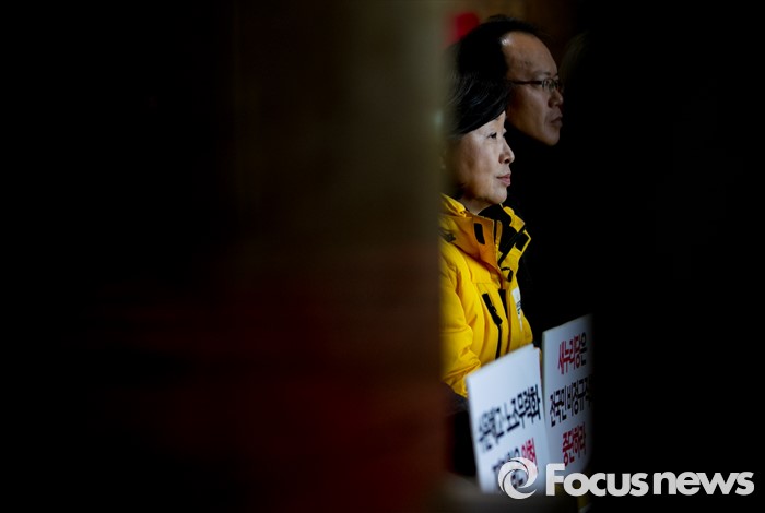 | △ 결의대회 마친 뒤 농성 이어가는 정의당 |