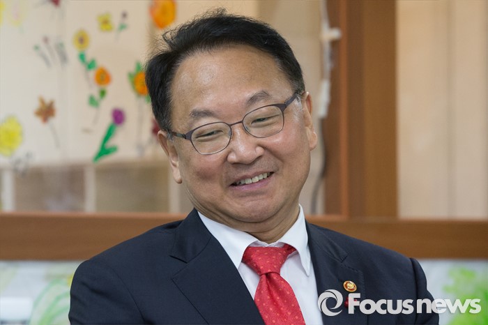 (서울=포커스뉴스) 유일호 경제부총리 겸 기획재정부 장관이 26일 오전 서울 강서구 보라유치원에 방문해 유치원 관계자 및 학부모들과 간담회 전 대화를 나누며 미소짓고 있다.