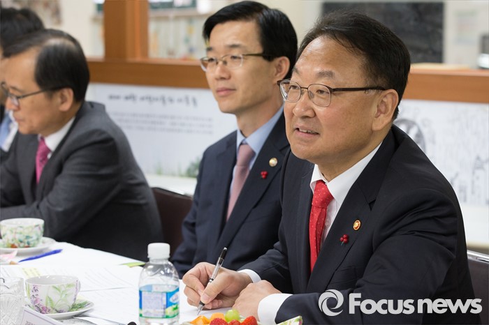 (서울=포커스뉴스) 유일호 경제부총리 겸 기획재정부 장관이 26일 오전 서울 강서구 보라유치원에 방문해 유치원 관계자 및 학부모들과 간담회를 열고, 의견을 받아 적고 있다.