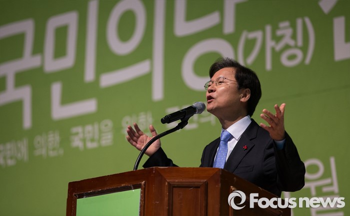 (전주=포커스뉴스) 국민의당과 통합 선언을 한 천정배 의원이 26일 오전 전주시 완산구 화산체육관에서 열린 전북도당 창당대회에 참석해 축사를 하고 있다.