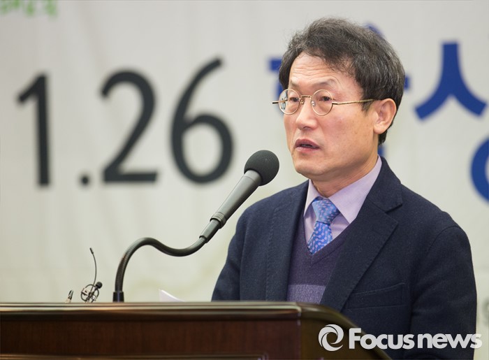 (서울=포커스뉴스) 26일 오후 서울 중구 한국프레스센터에서 열린 '1.26 서울 학생 인권의 날 선포식'에 참석한 조희연 서울시 교육감이 환영사를 하고 있다.
