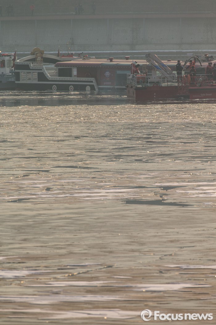 (서울=포커스뉴스) 26일 오후 서울 한강 영동대교 인근을 지나던 한강유람선이 침수, 구조대원들이 구조활동과 견인 작업을 하고 있다.