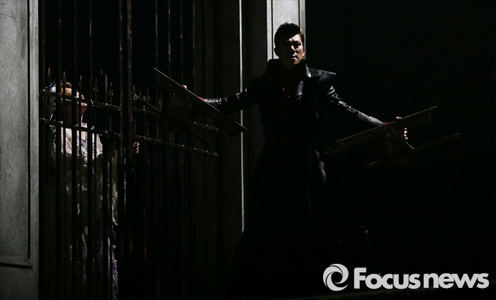 (서울=포커스뉴스) 26일 오후 서울 종로구 세종문화회관에서 열린 뮤지컬 '드라큘라' 프레스콜에 참석한 배우 박은석(오른쪽)이 하이라이트 공연을 선보이고 있다.