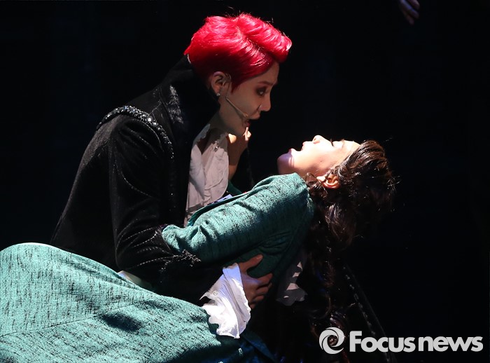 (서울=포커스뉴스) 26일 오후 서울 종로구 세종문화회관에서 열린 뮤지컬 '드라큘라' 프레스콜에 참석한 배우 김준수가 하이라이트 공연을 선보이고 있다.