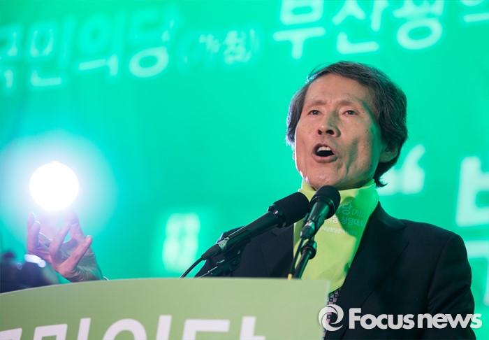 (부산=포커스뉴스)한상진 공동 창준위원장이 26일 오후 부산 해운대구 벡스코에서 열린 국민의당 부산시당 창당대회에서 축사를 하고 있다.