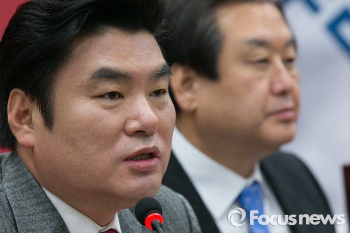 (서울=포커스뉴스) 원유철(왼쪽) 새누리당 원내대표가 27일 오전 서울 여의도 국회에서 열린 최고중진연석회의에 참석해 모두발언하는 동안 김무성 대표가 경청하고 있다.
