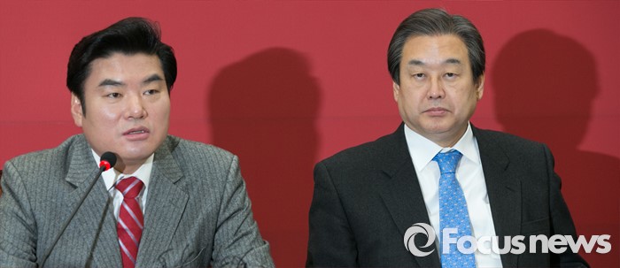 (서울=포커스뉴스) 원유철(왼쪽) 새누리당 원내대표가 27일 오전 서울 여의도 국회에서 열린 최고중진연석회의에 참석해 모두발언하는 동안 김무성 대표가 경청하고 있다.