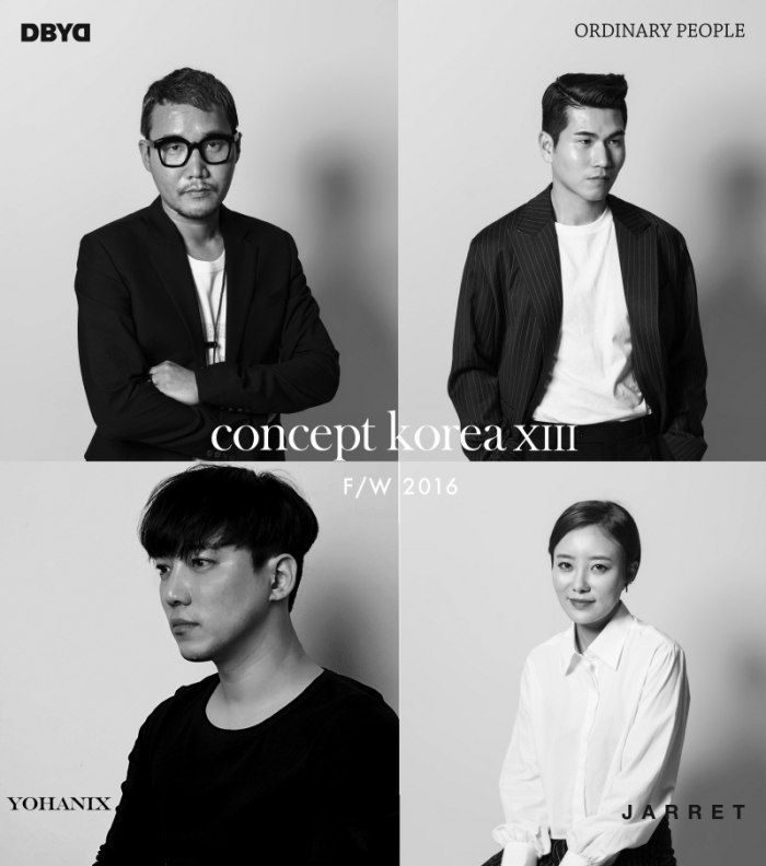 이번 '컨셉코리아'에는 작년 S/S(봄·여름) 시즌에 이어 남성복 부문 디바이디(DBYD)의 강동준 디자이너와 오디너리피플(Ordinary People)의 장형철 디자이너, 여성복 부문 자렛(JARRET)의 이지연 디자이너가 참여한다. 이번 시즌에는 요하닉스(YOHANIX)의 김태근 디자이너가 여성복 부문에 새롭게 합류한다.