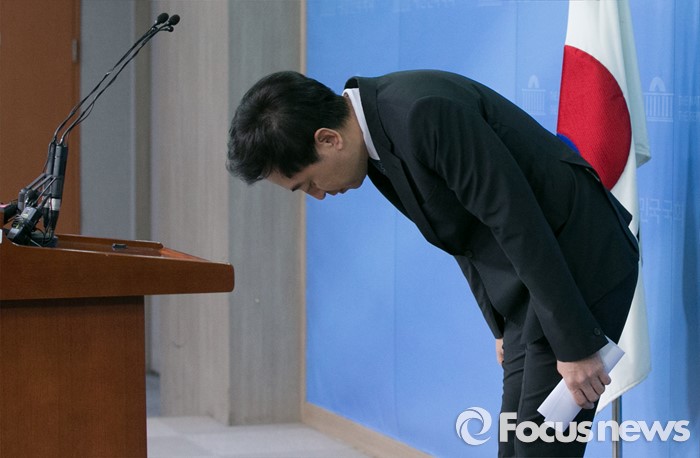 (서울=포커스뉴스) 안철수 의원의 핵심 측근이었던 금태섭 더불어민주당(구 새정치민주연합) 전 대변인이 27일 오전 서울 여의도 국회 정론관에서 20대 총선 서울 강서갑 출마 기자회견에 앞서 인사하고 있다.