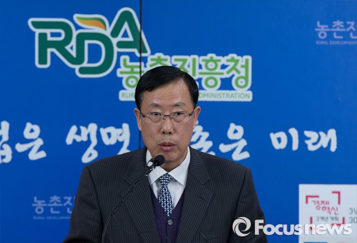 (세종=포커스뉴스) 27일 오전 세종시 정부세종청사 농림축산식품부 기자실에서 김응본 국립농업과학원자원부장이 흑미 호분층 기능선분 추출기술 개발 및 지방감소 효과 구명 관련 브리핑을 하고 있다.