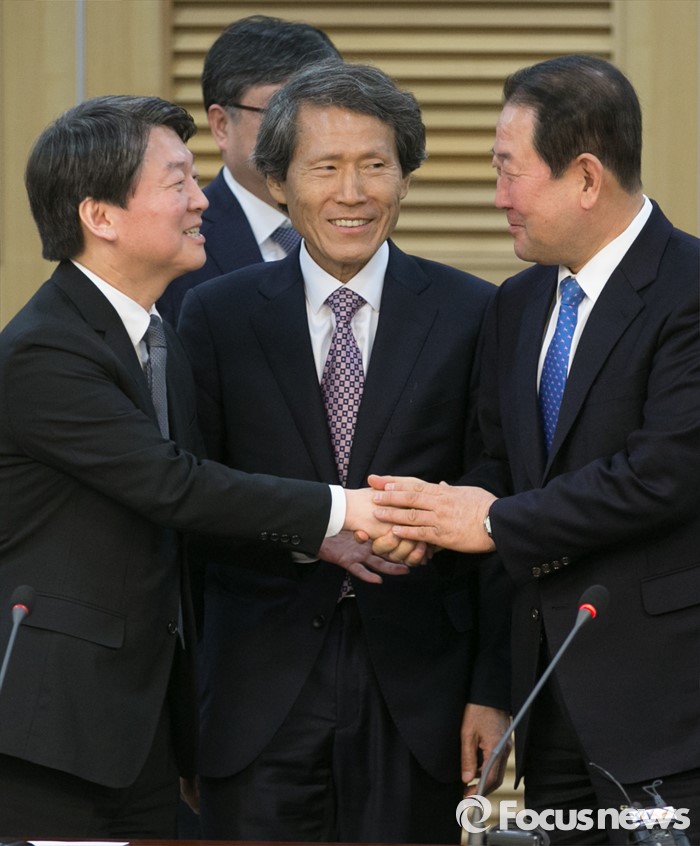 안 의원과 박 창준위원장, 김 부위원장은 통합 선언문의 5개 항목을 차례로 밝혔다.