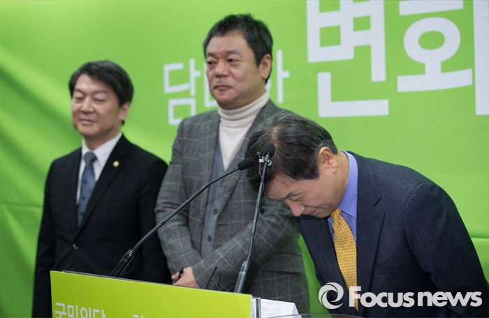 (서울=포커스뉴스) 국민의당 언론특보로 선임 된 한명규 코라오 그룹 부회장이 27일 오전 서울 마포구 국민의당 당사에서 입당 인사를 하고 있다.