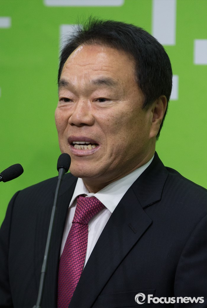 (서울=포커스뉴스) 이성수 전 대구시 의회 의장이 27일 오전 서울 마포구 국민의당 당사 기자회견장에서 국민의당 합류 의사를 밝히고 있다.