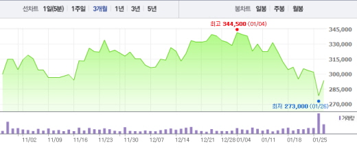 한편, LG화학도 중국의 보조금 축소 발표에 대한 진화에 적극 나섰다. 김종현 LG화학 자동차전지 상업부장(부사장)은 26일 열린 4분기 기업설명회에서 “중국이 전기차 보조금을 감축해도 국내 전기차 배터리 사업에 영향을 미치진 않을 것”이라며 “중국이 전기차 육성 정책을 포기한 것이 아니라 2017년 2018년이 되면 전체 전기차 물량이 증가, 이를 만드는 비용이 떨어지는 것을 감안한 정책”이라고 설명했다.LG화학 주가흐름<사진출처=네이버 캡쳐>삼성SDI 주가 흐름<사진출처=네이버 캡쳐>